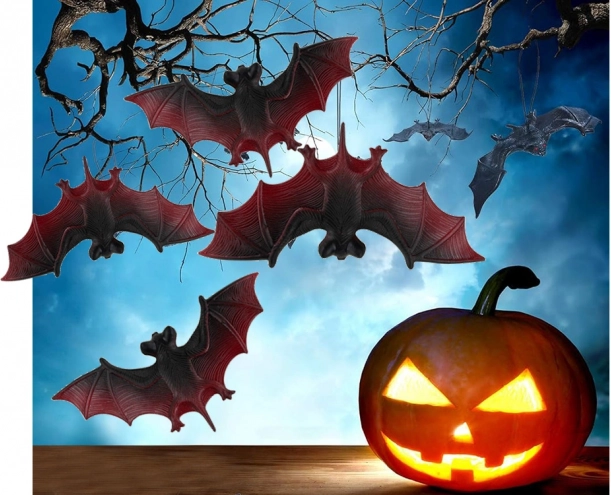 Vytvořte strašidelnou halloweenskou atmosféru během chvilky! Tato sada 4 realistických netopýrů z odolného plastu/gumy je ideální pro výzdobu domu, zahrady i party. Jednoduše je zavěsíte na větev, pavučinu či polici a získáte efektní dekorace s výraznými černo‑červenými křídly.
