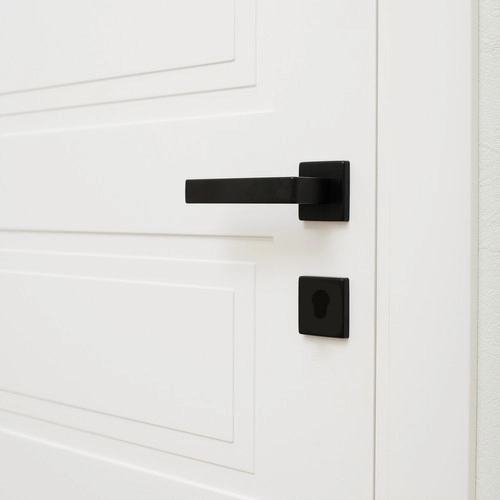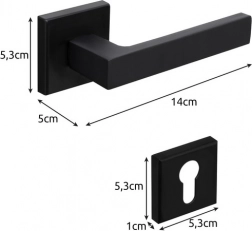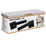 Moderní sada dveřních klik Ruhhy v matné černé barvě pro vnitřní dveře nabízí univerzální montáž na levé i pravé dveře, tichý chod a pevné uchycení s imbusovým dotahem. Součástí je čtvercová rozeta pro čistý vzhled a ochranu otvoru, kompletní montážní příslušenství a ergonomická rukojeť pro pohodlné otevírání.