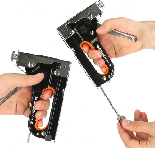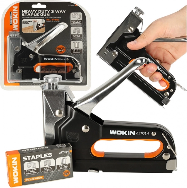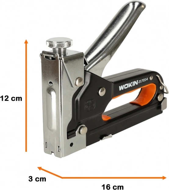 Ruční čalounický sponkovač značky Wokin je ideální nástroj pro širokou škálu čalounických prací a dalších projektů. Tento profesionální nástroj nabízí vynikající výkon díky své odolné konstrukci a inovativním funkcím.