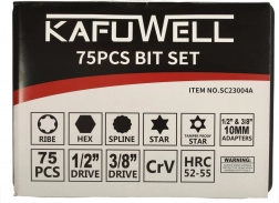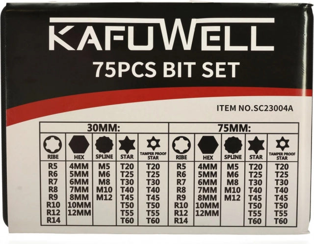 Univerzální sada bitů KAFUWELL s 75 díly kombinuje výkon a přesnost pro dílnu i domácnost. Odolné bity ze slitiny CrV, krátké i dlouhé provedení, typy HEX, RIBE, SPLINE, TORX a TORX Security a navíc 3 redukce 1/2" a 3/8". Přehledná praktická přepravní kazeta udržuje pořádek a usnadňuje přenášení.