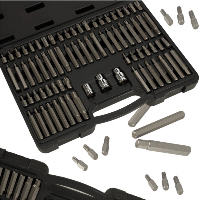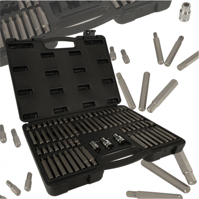 S touto komplexní sadou bitů získáte vše, co potřebujete pro šroubování a povolování různých typů spojů v automobilové, strojní i domácí sféře. Bity z chrom-vanadiové oceli CrV poskytují vysokou životnost, přesné dosednutí a spolehlivý přenos síly. V sadě najdete krátké i dlouhé bity v široké škále velikostí a také redukce 1/2" a 3/8" pro maximální kompatibilitu s nářadím.