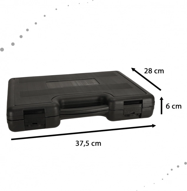 Vše je uloženo v odolném plastovém kufru s jasným značením jednotlivých pozic, takže máte správný nástavec vždy po ruce. Sada je ideální pro profesionály i nadšené domácí kutily, kteří hledají pořádek, mobilitu a univerzálnost v jednom řešení.