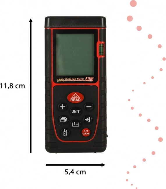 Dálkoměr nabízí různé měřící funkce jako měření délky, plochy, objemu i Pythagorovu větu a je vybaven vestavěnou spiritová úroveň pro snadné použití.