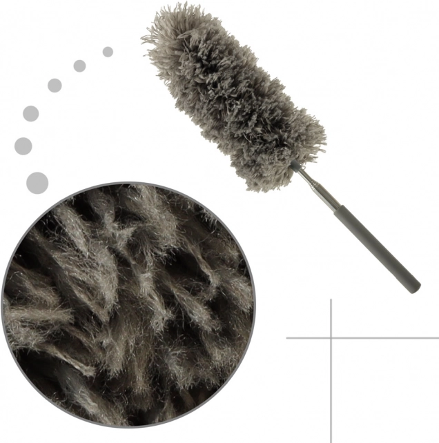 Díky jemnému mikrovláknu prachovka účinně sbírá a zachycuje prach, aniž by poškodila povrchy. Ideálně se hodí pro čištění stropů, nábytku, žaluzií, nebo lustrů.