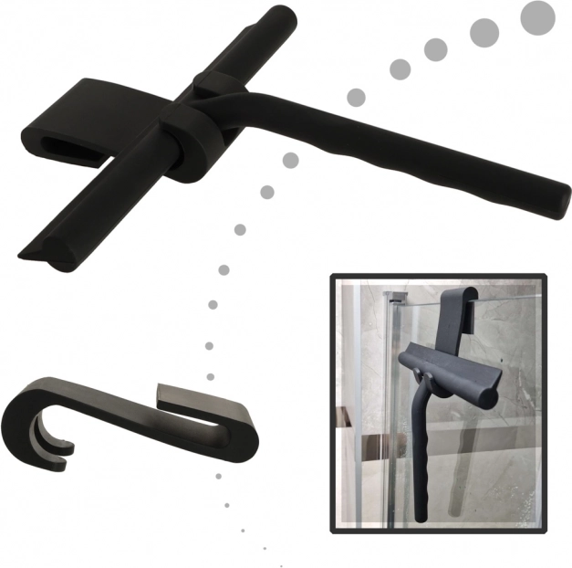 Součástí balení je praktický silikonový háček, který usnadňuje úchyt a uložení stěrky na sprchové zástěně.