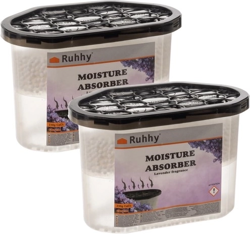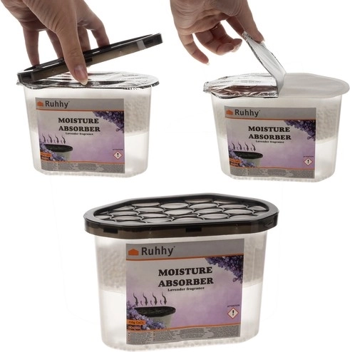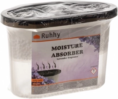 SPECIFIKACE - materiál: plast + chlorid vápenatý; hmotnost granulí: 230 g; vůně: levandule; kapacita 1 absorbéru: 500 ml; rozměry a absorbér: 15 x 10,2 x 8,2 cm; hmotnost: 544 g; hmotnost jednoho balení: 1,5 kg; hmotnost jednoho balení: 1,5 kg: