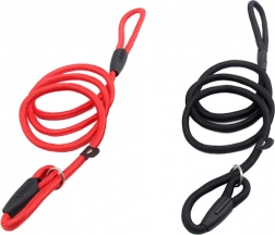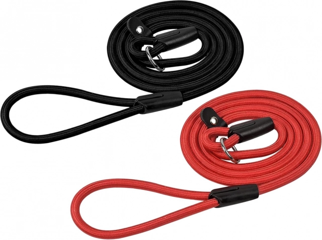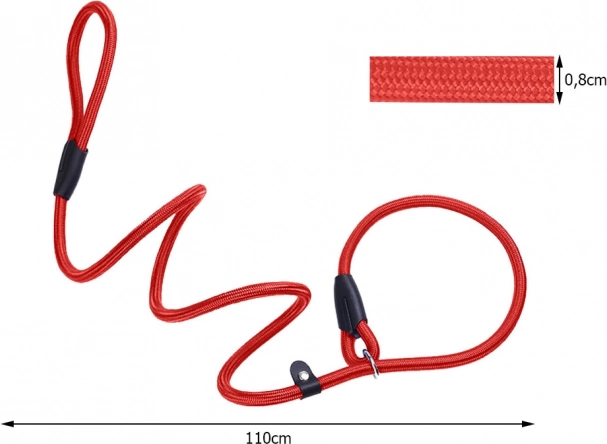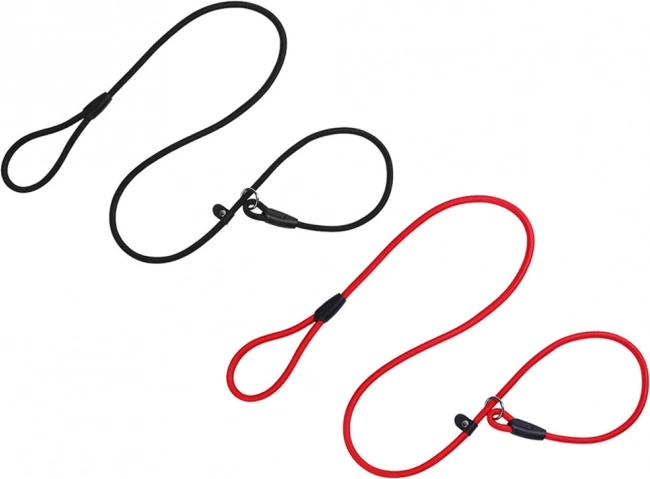 Jednoduchý klipový mechanismus usnadňuje nastavení a zajištění délky i obvodu stahovacího oka pro rychlé nasazení a trénink poslušnosti. Vodítko je vhodné pro běžné procházky, výcvik povelů i pohyb v prostředí, kde pes nesmí chodit na volno. Dodává se v mixu barev (černá/červená), bez možnosti výběru.