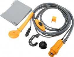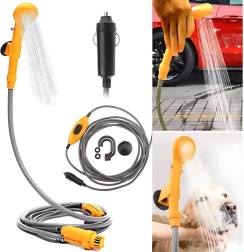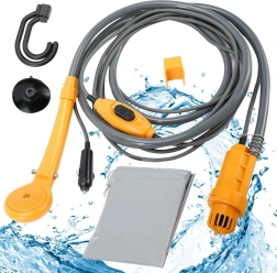 Tato přenosná cestovní sprcha je napájena ze standardní 12V autozásuvky, takže ji snadno použijete v autě, obytném voze, na lodi nebo na pozemku s přístupem k baterii. Díky dlouhému napájecímu kabelu a hadici je manipulace pohodlná a mytí rychlé.