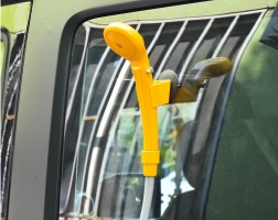 Součástí je přísavka a háček pro pohodlné zavěšení sprchové hlavice na okno nebo karoserii.