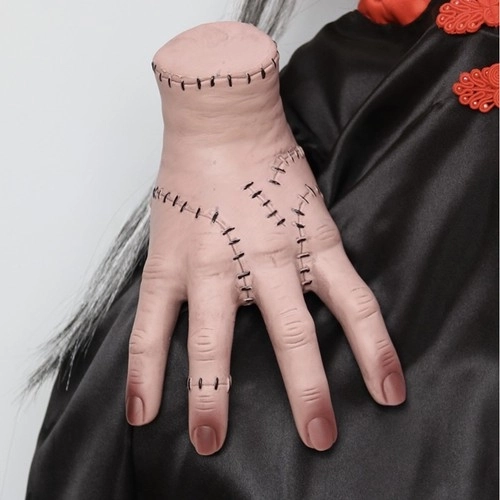 Díky velikosti dospělé ruky a lehkému materiálu se s rekvizitou snadno manipuluje a lze ji umístit prakticky kamkoli – na stůl, poličku nebo k doplnění horror kostýmu. Věrné detaily a decentně zbarvené nehty podtrhují autentičnost bez nutnosti líčení či speciálních efektů.