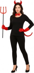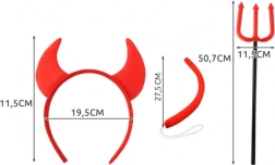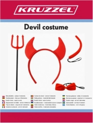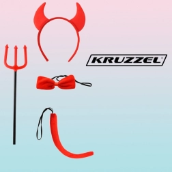 Kompletní kostým čertíka pro děti i dospělé se 4 doplňky: rohy na čelence, mašle, ocas a trojzubec. Univerzální velikost s elastickými gumičkami zajistí pohodlné nošení. Skvělá volba na Halloween, karneval, narozeninové party nebo tematické akce – vytvořte během chvilky výrazný a zábavný kostým.