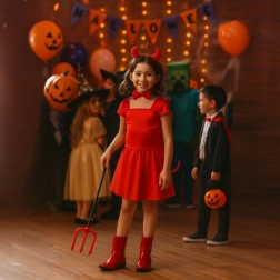 Stylový čertí kostým v sytě červené barvě promění každé dítě i dospělého během okamžiku. Díky měkkým materiálům a pružným úchytům se doplňky snadno nasazují a příjemně drží po celou dobu zábavy. Sada je ideální pro domácí hraní rolí, školní besídky, focení i večírky.
