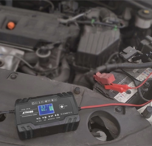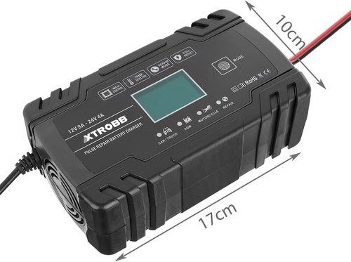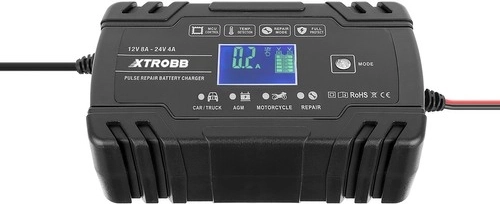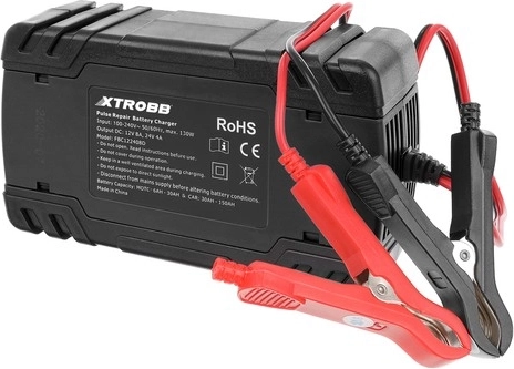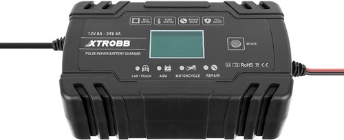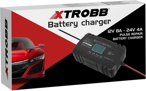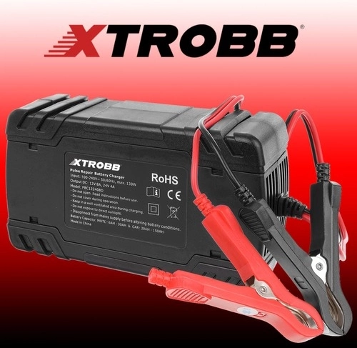 Kompaktní a výkonná nabíječka akumulátorů XTROBB pro 12 V a 24 V s inteligentním řízením mikroprocesorem. Nabízí automatickou detekci napětí, pulzní opravný režim pro oživení zasažených či zasiarčených baterií a komplexní ochranu proti přepólování, zkratu, přebití i přehřátí. Díky dotykovému panelu a LCD displeji je ovládání snadné a přehledné. Ideální pro auta, motocykly, sekačky i lodě.
