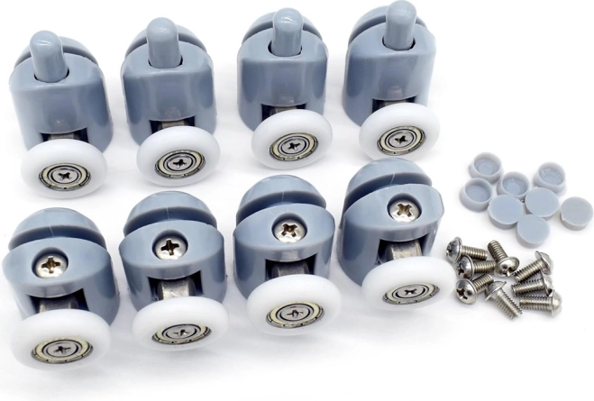 Sada obsahuje osm koleček, která umožňují hladký a bezproblémový pohyb sprchových dveří. Každé kolečko disponuje pevnou konstrukcí z plastu a oceli.