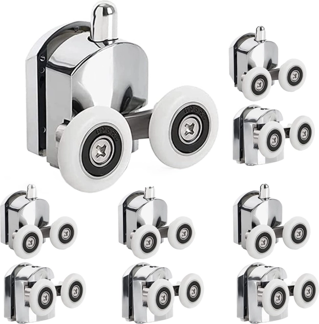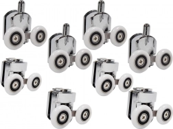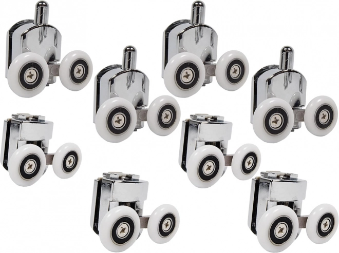 Díky kvalitnímu zpracování s přesnými ložisky válečky podporují plynulé a tiché otevírání a zavírání sprchových dveří. Sada obsahuje osm válečků – čtyři horní a čtyři spodní – podporující stabilitu dveří.