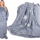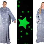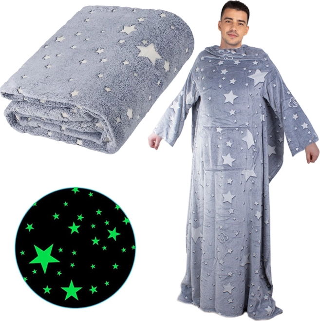 Navržena s prostornými rukávy, které vám umožní volnost pohybu, deka nesklouzává na zem jako běžné deky. Navíc její fluorescenční vlastnosti zajišťují, že ve tmě září – ideální pro jedinečnou atmosféru doma.