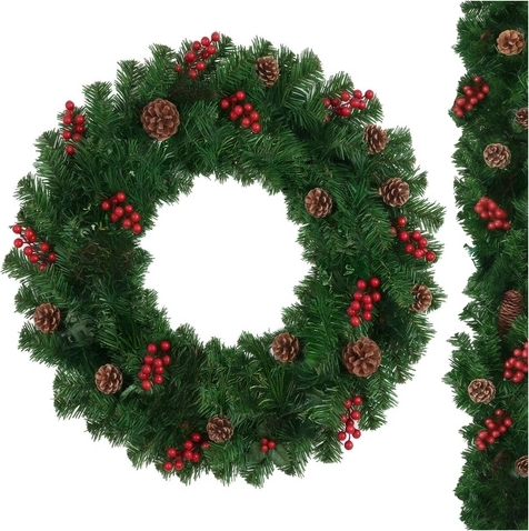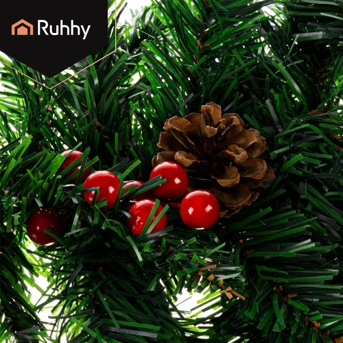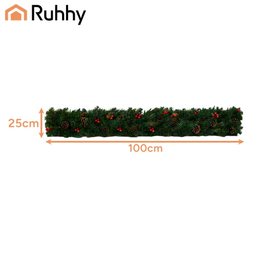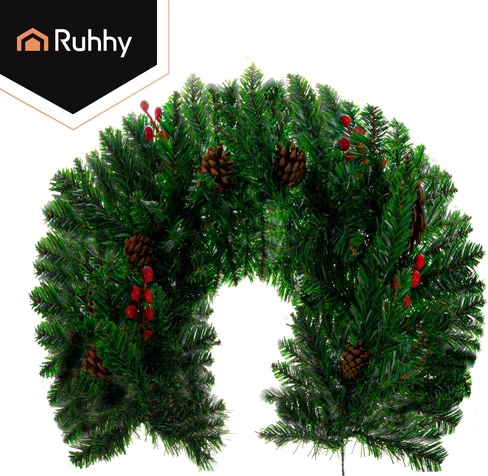 Stylová vánoční girlanda 1 m s hustým jehličím z PVC je ideální pro výzdobu dveří, balkonů, zábradlí či sloupů. Díky plastičnosti ji snadno vytvarujete podle potřeby – od rovného lemování až po vícevrstvé kruhové dekorace. Integrované šišky a větvičky s červenými bobulemi dodají přirozený, elegantní nádech.
