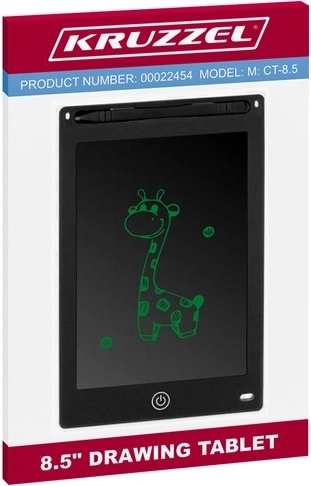 Tablet pro kreslení Kruzzel je vybaven obrazovkou o úhlopříčce 8,5", která reaguje na dotyk jakýmkoli předmětem, dokonce i nehtem. Nad obrazovkou se nachází držák pro rysovací pero, které umožňuje pohodlné uchování.