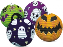 Stylový halloweenský lampion ve tvaru koule o průměru 25 cm rozzáří každou párty, zahradní slavnost i lampionový průvod. Díky skládací konstrukci je lehký, snadno se zavěsí a během chvilky vytvoří strašidelnou atmosféru. Na výběr jsou 4 různá halloweenská provedení s dýní, duchem, lebkami a pavoukem. Ideální jako závěsná dekorace do interiéru i na kryté venkovní akce.