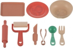 Sada zahrnuje bezpečný nůž, vidličku, lžíci, misku, podnos a další nástroje, které podporují kreativní hru a pomáhají dětem rozvíjet jejich představivost.
