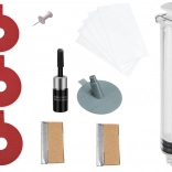 Vše potřebné v jednom: pryskyřice, stříkačka, aplikátor, lepící těsnění, vytvrzovací fólie i žiletka pro čisté dokončení.