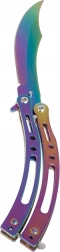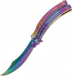 Motýlí nůž disponuje nádherným duhovým povrchem, který ihned upoutá pozornost. Díky kvalitnímu kovovému zpracování je ideální nejen pro estetický požitek, ale i pro praktické použití. Bezpečnostní pojistka zajišťuje bezpečné nošení a manipulaci.