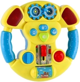 Volant svítí, má řadu tlačítek i otočných prvků a vydává zvuky motoru, hasičské či policejní sirény či houkačky záchranky. Právě malým dětem je přizpůsobena i velikost volantu, jenž má průměr cca 16 cm.