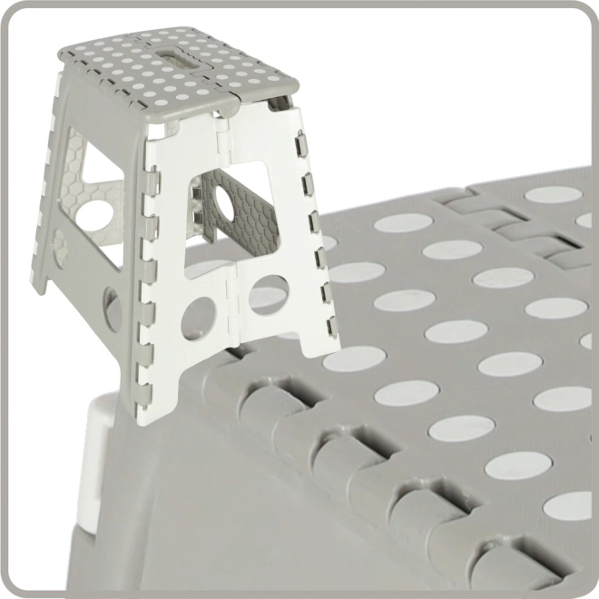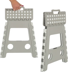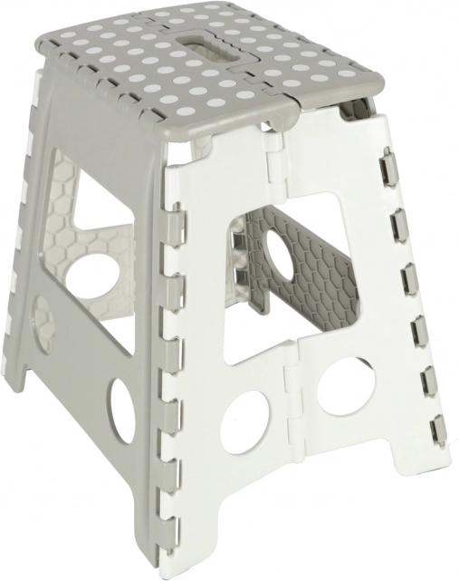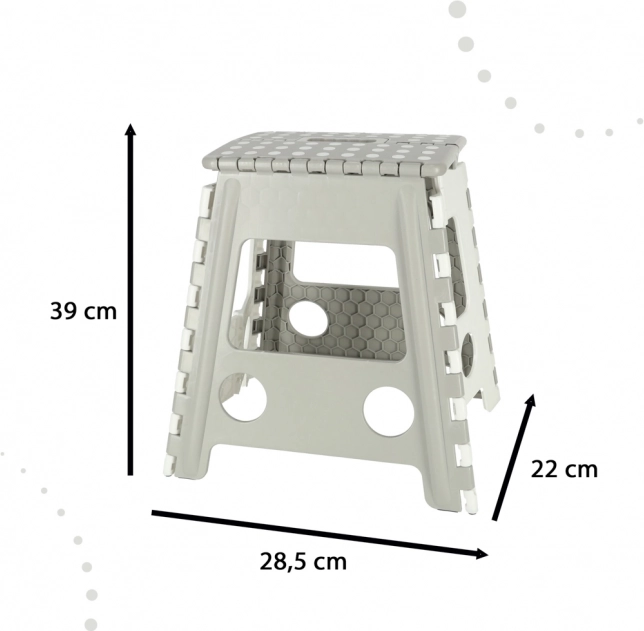 Lehká a pevná skládací stolička ve světle šedé barvě přidá potřebných 39 cm výšky, má nosnost až 150 kg a protiskluzový povrch pro bezpečný krok. Díky skládací konstrukci a rukojeti ji snadno přenesete i uložíte.