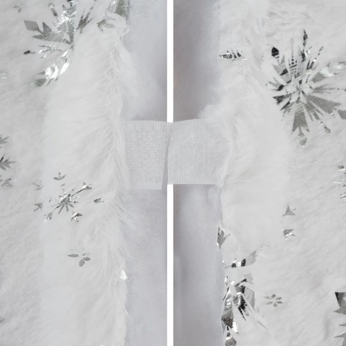 Sukně je zdobená stříbrnými vločkami a hvězdičkami, což přidává kouzlo vaší vánoční výzdobě.
