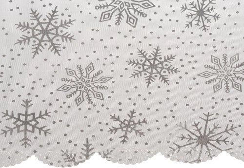 Tento vánoční ubrus je ideálním doplňkem k vašemu slavnostnímu stolu. Díky svému designu, který je zdobený stříbrnými sněhovými vločkami a tečkami, dodává stolu ozdobný vzhled a chrání jej před poškozením a skvrnami během slavnostních jídel. Ubrus je vyroben z polyesteru, je snadno udržovatelný a lze jej prát, takže ho můžete použít opakovaně rok po roku.