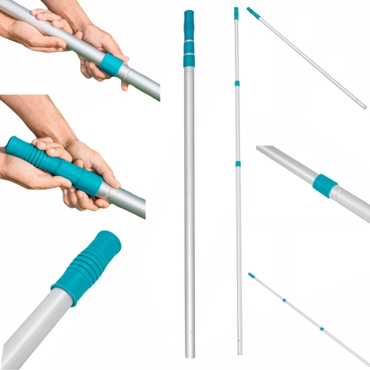 Teleskopická hliníková tyč BESTWAY o délce až 360 cm je praktický pomocník pro každodenní údržbu bazénu. Díky nastavitelné délce snadno dosáhnete na nečistoty z hladiny i stěn a připojíte ji k různým nástavcům. Je lehká, odolná vůči chlóru a UV a kompatibilní s koncovkami o průměru 30 mm.