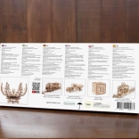 Skládání probíhá bez lepidla, jednotlivé díly z kvalitní dýhy do sebe přesně zapadají. Model rozvíjí motoriku, trpělivost a pochopení mechaniky díky převodům a pohyblivým částem. Pro perfektní chod stačí lehce promazat vybrané osy voskem dle návodu.