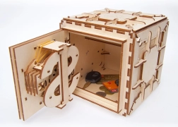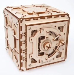 Součástí je kombinační zámek s možností nastavení vlastního kódu (z výroby 3–2–1). Trezor je ideální pro uložení drobností, mincí či karet a zároveň jako stylová dekorace i edukační pomůcka pro pochopení principů mechaniky. Doporučeno pro stavitele od 14 let.