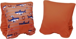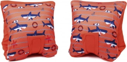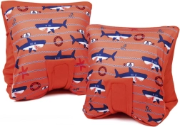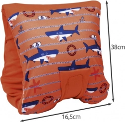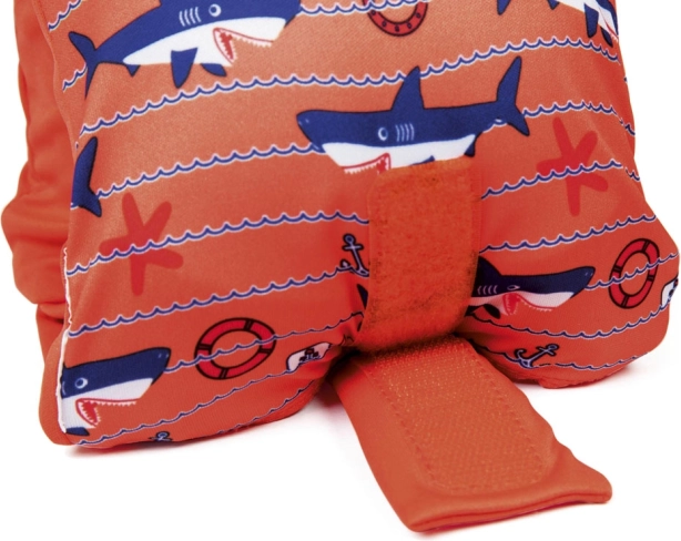 Živé oranžové provedení s veselými žraloky podporuje chuť dětí trávit čas ve vodě a zvyšuje viditelnost.