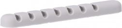 Praktický organizér kabelů v šedé barvě pomůže zkrotit nepořádek kolem počítače i pracovního stolu. Díky promyšlenému průměru otvorů pevně podrží běžné typy vodičů, takže máte USB, sluchátkové, napájecí i audio kabely vždy po ruce a přehledně srovnané.