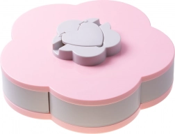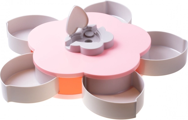 Elegantní růžový organizér ve tvaru květu spojuje dekorativní vzhled a chytré skladování. Otočný „poupátkový“ ovladač snadno rozvine květ a zpřístupní jednotlivé přihrádky, které udrží chutě odděleně a podávané dobroty čerstvé.