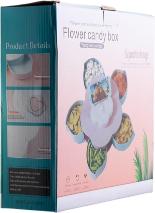 Stylová květinová dóza s otočným mechanismem pro praktické servírování a ukládání. Po jemném otočení se rozvine do 5 samostatných přihrádek, ideálních na bonbony, oříšky, sušené ovoce a další drobnosti. Vyrobena z bezpečných, netoxických a ekologických materiálů pro každodenní použití.