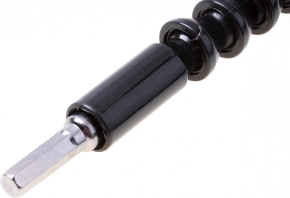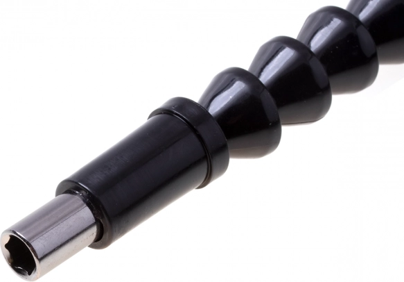Tento ohebný nástavec z odolné nástrojové oceli je ideálním pomocníkem při montážích v úzkých prostorech – za skříňkami, v rozích nebo uvnitř zařízení. Konstrukce s pružnými segmenty umožňuje ohýbání do různých směrů a plynulý přenos krouticího momentu z nářadí na bit.