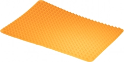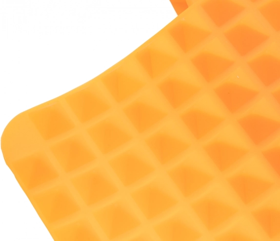 Podložka je vyrobena z kvalitního silikonu pro styk s potravinami, který nepohlcuje ani neuvolňuje pachy. Je pružná a tvarovatelná, snadno se přizpůsobí většině plechů a lze ji srolovat nebo složit pro úsporu místa. Kromě pečení poslouží také jako podložka pod horké hrnce a pánve nebo jako forma na led – stačí naplnit pyramidy vodou a zmrazit.