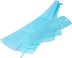 Díky silikonovým sáčkům, praktickým spojkám a špachtlím bude práce s krémem přesná a pohodlná. Sada zahrnuje i silikonové košíčky na muffiny, drátový kráječ na korpusy a jednorázové sáčky – stačí doplnit krém a můžete tvořit.