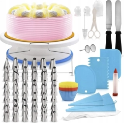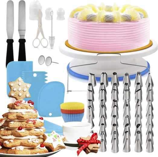 Užijte si profesionální výsledky při domácím pečení. Tato rozsáhlá sada obsahuje vše, co potřebujete pro zdobení dortů, cupcaků i zákusků – od otočného podnosu pro plynulé otáčení až po desítky trysek pro různé efekty. Kvalitní nerezová ocel a bezpečné plasty zaručují dlouhou životnost a snadné čištění.