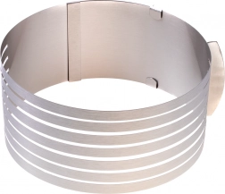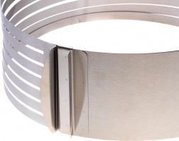 Kroužek umožňuje nastavit průměr mezi 15 a 20 cm, což zlepšuje flexibilitu při použití na různé velikosti dortů.