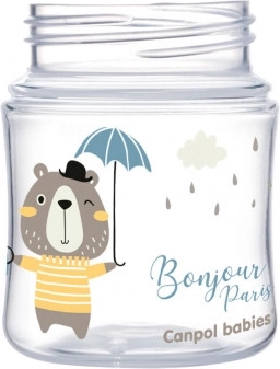Lahev je vyrobena z kvalitního polypropylenu (PP), je BPA free a vyhovuje přísným evropským normám. Těsnicí disk umožní bezpečné uchování a transport bez rizika rozlití i možnost zamrazení pokrmu. Potěší také roztomilý francouzský design s motivem medvídka a nápisem „Bonjour Paris“.