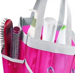 Tato růžová síťová plážová taška je navržena pro maximální praktičnost. Reinforcovaná síťovina umožňuje cirkulaci vzduchu, takže mokré věci rychleji schnou a písek snadno vypadá. Díky prostornému vnitřku a chytrým postranním kapsám budete mít všechny nezbytnosti přehledně po ruce.