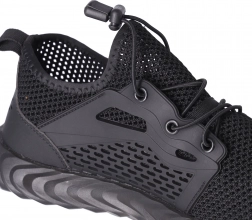 Díky ocelové tužince a mezipodešvi odolné proti propíchnutí spolehlivě chrání prsty i plosku chodidla. Gumová podešev s protiskluzným vzorkem zvyšuje stabilitu a pomáhá předcházet uklouznutí. Elastické rychlošněrování zkracuje čas obouvání a drží nohu pevně na místě.