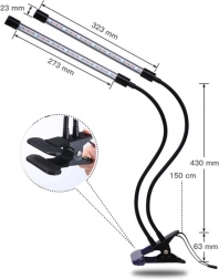 Dvě ohebná ramena a pevný klip umožní nasměrovat světlo přesně tam, kde je potřeba – na parapetu, poličce nebo pracovním stole. Energeticky úsporné LED diody s nízkou spotřebou 12 W poskytují stabilní svit bez přehřívání a dlouhou životnost.