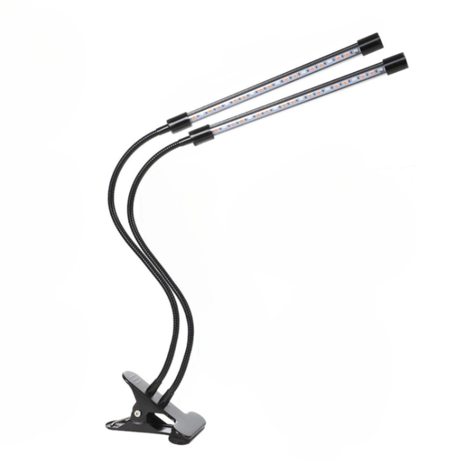 Dvě nezávisle nastavitelné hlavice s ohebnými husími krky nasměrují světlo přesně k listům a sazenicím, ať už na polici nebo parapetu.