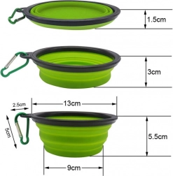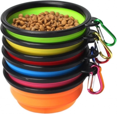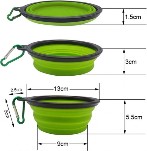 Tato cestovní miska ze silikonového materiálu se během chvilky rozloží a je připravena k podávání vody nebo krmiva. Po použití ji jednoduše složíte do plochého tvaru, který v tašce téměř nezabere místo. Karabina umožní bezpečné připnutí k batohu, vodítku nebo poutku kalhot.