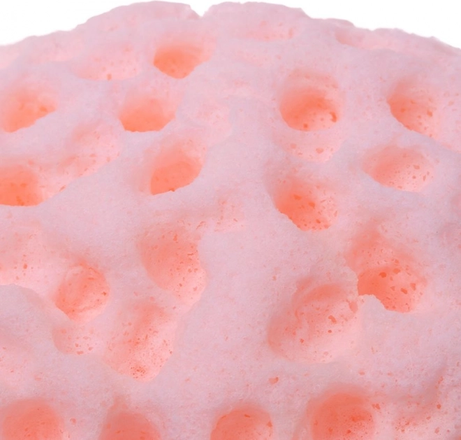 Jemná růžová koupelová houba pro každodenní péči o tělo. Poskytuje šetrné čištění, příjemnou mikromasáž a je vhodná i pro citlivou pokožku. Praktické závěsné poutko usnadňuje sušení a skladování.
