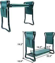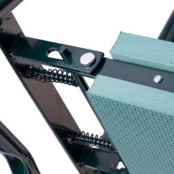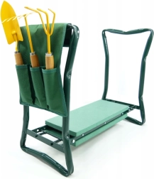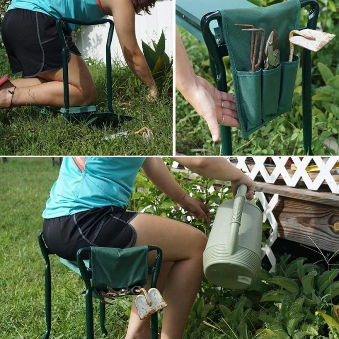 Pro větší pohodlí má široké boční rukojeti pro bezpečné vstávání, skládací rám pro úsporu místa a odolné textilní kapsy pro nůžky, motyčky či rukavice. Využijete ho nejen na zahradě, ale i na rybách, pikniku nebo při domácích kutilských pracích.